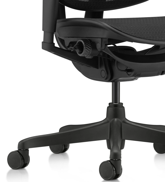 The integrated lumbar support supports your lower back while the arm rests can be adjusted for height, depth, width and angle. The Ergohuman Ultra Black edition has a cool industrial aesthetic with a powder coated aluminium back frame and wheelbase.